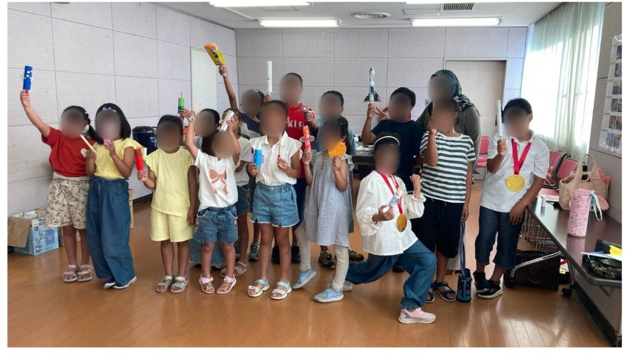 最後にみんなで完成した鉄砲とロケットを持って