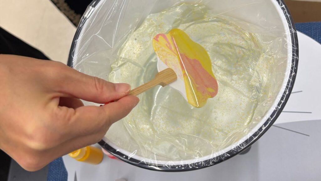 中国文化ブースでは、水に浮かべた漆に扇子を浸して模様を作る「漆扇作り」が体験でき、ひとつとして同じ柄にならないオリジナル扇子が大好評でした。